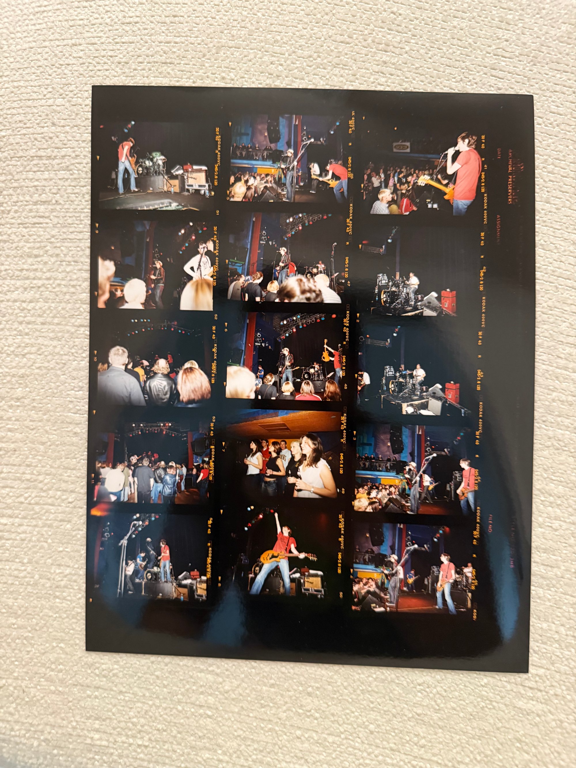Five original contact sheet prints from our San Diego House of Blues performance.. A very long time ago